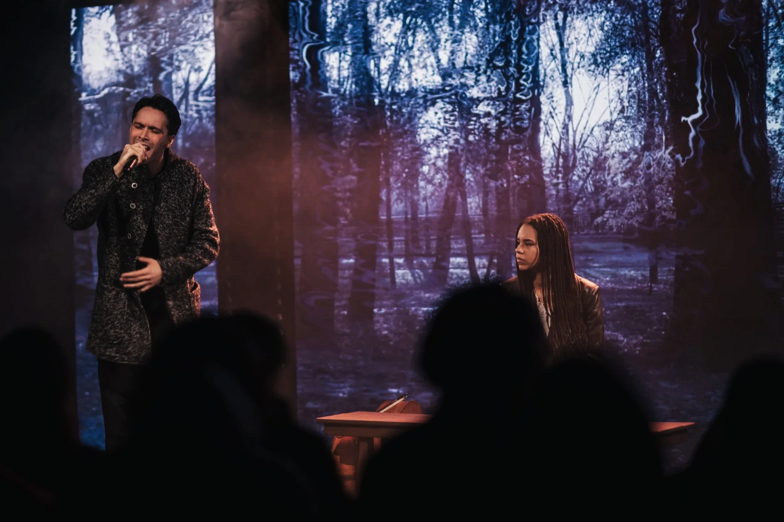 Performed by the artists Igor and Ena. I had the pleasure of being one of the sound designers as well as a stage hand for this production. I was the audio mixer for the intro and outro videos and was responsible for set changes as well as microphone and prop placements. We tell a story of the aftermath of a failed relationship. Igor has found Ena’s notebook in his apartment and reaches out to return it.